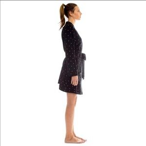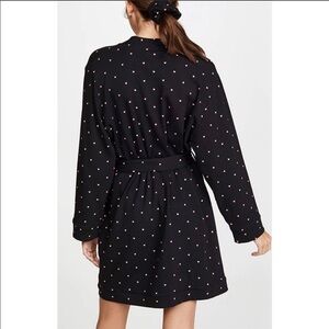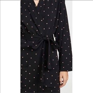 Plush Apparel Fleece Heart Print Robe Scrunchie Set New with tags Black fleece tie waist robe with a matching scrunchie Pink heat print Ultra soft Front patch pockets Removable belt waist