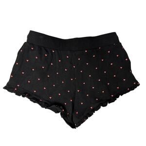 Experience cozy comfort and adorable style with the Plush Apparel Black Heart Pajama Shorts in size Small. These shorts feature a charming black heart pattern that adds a touch of sweetness to your loungewear. Made with plush fabric, they provide softness and relaxation for a restful night's sleep or relaxing days at home.