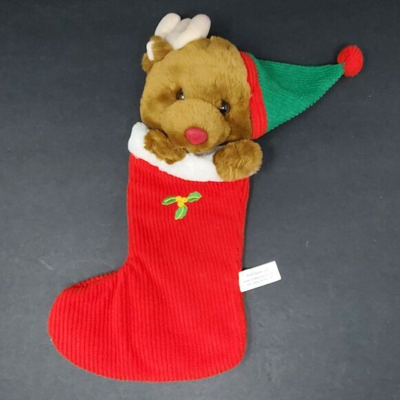 Plush Appeal Christmas Stocking Stuffed Animal Reindeer Santa Green Red Small