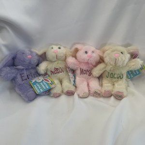 LOT OF 8 This adorable plush bunny is the perfect addition to your collection. Standing at 8 inches tall, it's small enough to fit in your hand but big enough to cuddle with. Great for crafting projects. I included a picture of an example I made a few years ago. The bunny comes in a lot of 8, featuring 4 cream and 4 pink colors so you can choose your favorite.