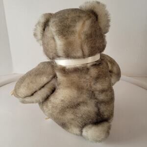 Plush Bear Gray Brown 12” Satin Bow Vintage Stuffed Animal Heartline Sterling