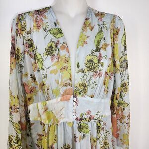 Plush Boutique Cover up Dress Small Floral Front Button Closure Open Front Sheer