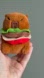 Adorable plush capybara toy designed as a burger. Features brown, green, red, and cream colors.