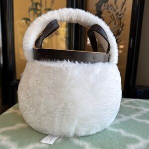 Adorable plush cow basket for Easter or Halloween. Features a soft white and gray design with cute pink accents. Has a wooden inner basket. Never used! About 6” tall basket and 10” to handle. Inner basket about 6.5” across. 11oz