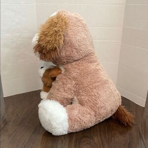 Adorable plush dog set featuring a large and small dog. Perfect for cuddling and playtime. The soft brown and white fur is so soft and fluffy. Measurements are in the photos. Gently used.