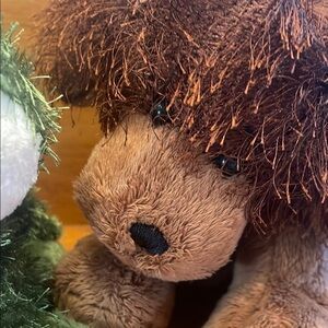 adorable plush toy set featuring a green frog and a brown dog. Perfect for cuddling and playtime.