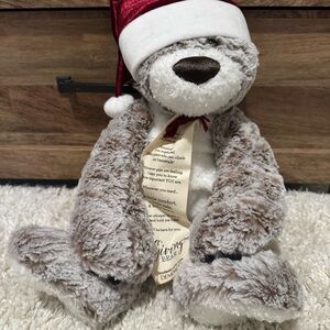 Plush Holiday Giving Bear with Red Santa Hat- Giving Collection- DEMDACO