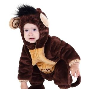 Get ready for Halloween with this adorable plush little monkey baby costume! Made with soft baby fleece velour material, lined in poly fill for added warmth and featuring a hood and full length zipper, this is a complete outfit is perfect for infants aged 12-18 months.