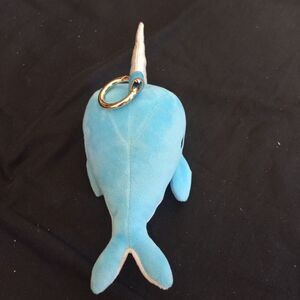 Plush Narwhal Unicorn Whale Portable Charger Power Bank Bag Charm, Sky Blue