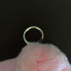 Light pink plush rabbit that adds a pop to your bag, backpack, keys or anything you want to attach it to