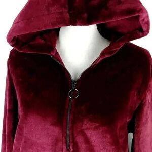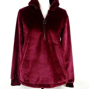Ideology Size Medium Lush Minky Soft Plush Hooded Popover Half Zip Jacket Pullover. Brand New. Incredibly Soft and Cozy. Size Medium. Long Sleeve, Elastic Adjustable Cords at Bottom to Keep Body Heat In and Cold Out. Color Way: Cherry Pie. Red Wine Burgundy Color.