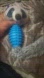Delight your pet with this plush raccoon dog toy featuring a durable blue rubber chew section. Perfect for playtime and dental health