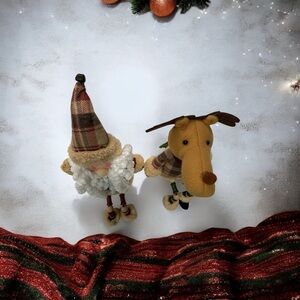 Bring festive cheer to your home with these delightful plush Santa and reindeer shelf sitters!