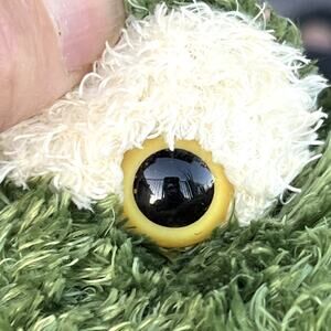 Plush Seated Green Frog Yellow Marble Eyes Soft Fur Plushie Stuffed Animal 9"