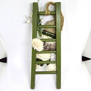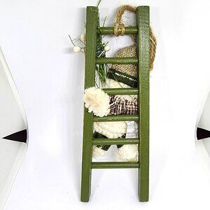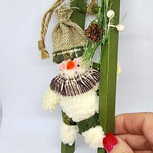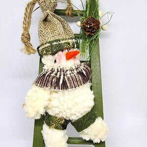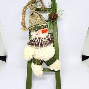 Plush Snowman Climb Green Ladder Cottage Farmhouse Christmas Holiday Ornament