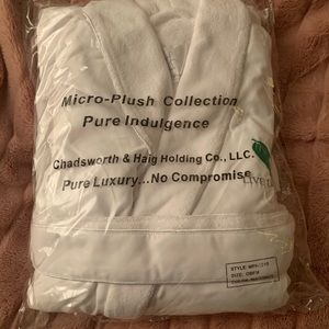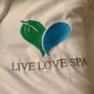 OSFM white, plush, LIVE LOVE SPA robe.
