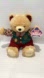 Adorable plush teddy bear dressed in a charming red and green outfit. Perfect for cuddling and playtime.