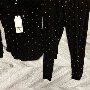 Plush | Thermal Heart Pajama Set Plus Scrunchie Black Hearts Size XS Gift