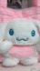 Adorable plush tote bags featuring cute Cinnamonroll or Hello Kitty designs. Soft pink and hot pink colors.