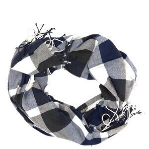 Plush Ultra Soft Fringe Scarf Plaid Navy / White