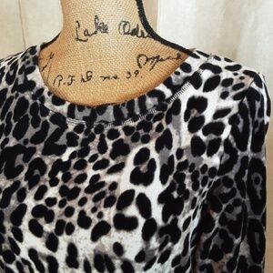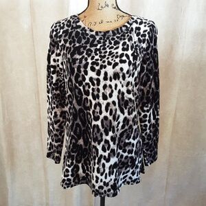 Plush Velour Leopard Print Long Sleeve Pullover Top Sz S