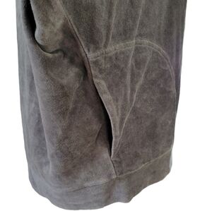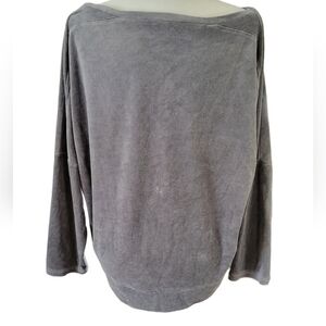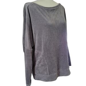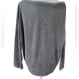 Soft old-school retro velour in an oversized fit, with a pocket on each side. Drop shoulders; ballet neckline. Very cozy!