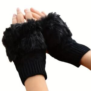 Plush Warm Ribbed Knitted Fingerless Gloves Great for Phone Black