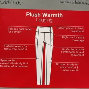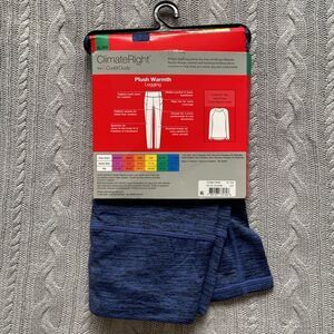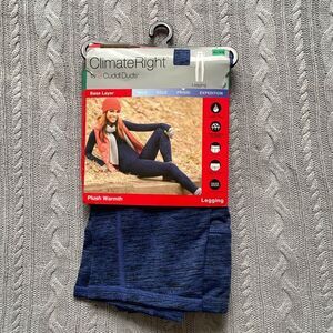 Plush Warmth Blue Denim Color High Rise Wide Waistband Brushed Leggings. Size: xl = dress size 18-20. Hip 46”-48. New in a package. Moisture-wicking fabric. Brushed inside. High rise, wide band with pockets. Flatlock seams. Fabric: 62% polyester, 30% recycled polyester, 8% spandex.