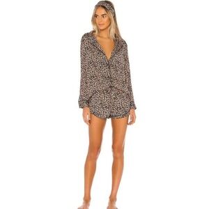 Plush Women's Cheetah PJ & Headband Set Black & Brown Multi Size S NWT