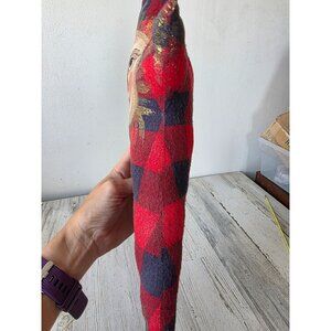 Plush anthromorphic star Sun vintage Xmas decor hanging plaid red blue gold glit