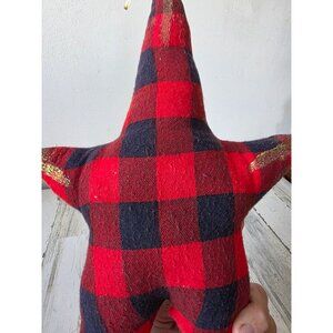 Plush anthromorphic star Sun vintage Xmas decor hanging plaid red blue gold glitter decor