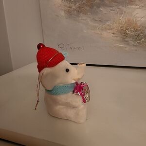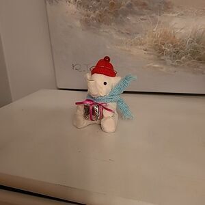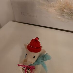 Pre-owned in good used condition. Elephant wearing scarf with gift and a bell on the hat.