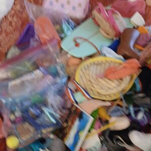 Lot of 18 inch doll clothes and accessories. Adorable plush pet carrier set featuring a pink and cream design. Perfect for small pet lovers. K-7