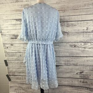 Plushe Dress Plus sz 4XL Light Blue Sheer Swiss Dots Knee A Line Wedding Church
