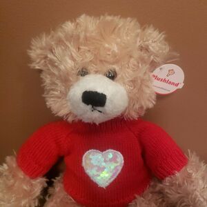 Plushland Teddy Bear Red Sweater Mermaid Sequin Heart Valentines Love With Tag
