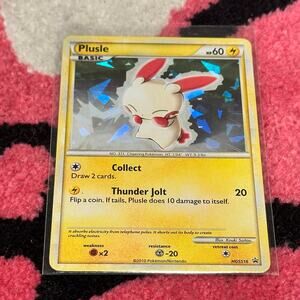 Authentic Plusle #HGSS16 from the HeartGold & SoulSilver Promo series. Features holo artwork of the electric-type Pokémon Plusle. Condition is as pictured; please review photos for edges and surface. A great addition for Promo collectors or fans of Johto Pokémon.