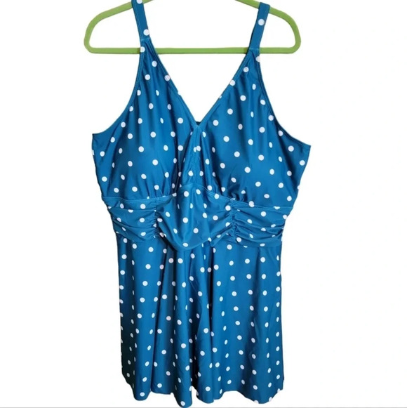 New size 26 swim dress. 24 in pit to pit, 35 in long. Greenish color. Polyester and spandex materials.