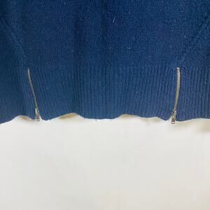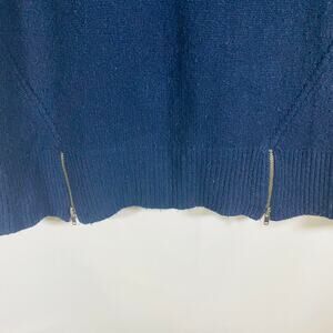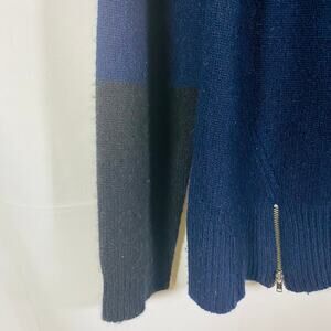 Ply Cashmere Navy Black Color Block Pullover Sweater Zipper Detail Medium