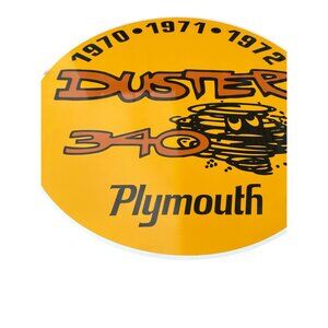 Celebrate the nostalgic charm of the Plymouth Duster 340 with this round heavy plastic sign, showcasing the iconic 1970-1972 design. Featuring vibrant yellow and bold black graphics, this piece captures automotive history.