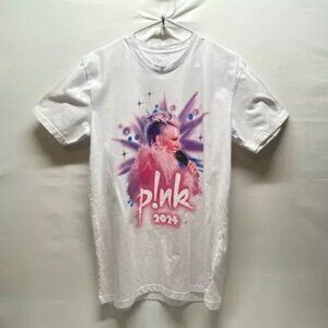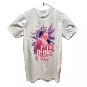P!nk 2024 Concert Shirt Adult Medium White Short Sleeve T-Shirt Multi Color Logo