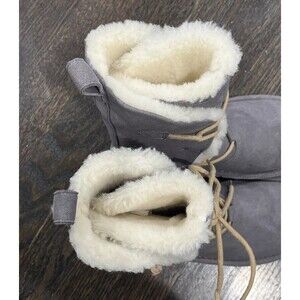 Po-Zu Zu Boots Size EU 38 US 7.5 Suede Sheepskin Slipper Gray Lace Up NWOB