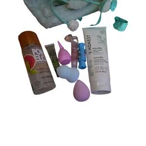 Adorable mint green plush backpack with embroidered Pochacco-style face and fluffy pom-pom ties. Comes filled with a curated mix of beauty goodies — perfect as a gift, teen/tween bundle, or kawaii lover set!