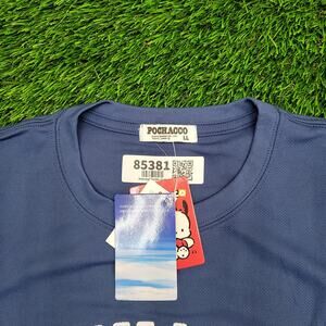 POCHACCO T-SHIRT, SANRIO POCHACCO APPAREL, WOMEN'S BLUE POCHACCO SHIRT, L/XL POCHACCO TEE, JAPANESE CARTOON CLOTHING, KAWAII FASHION TOP, POCHACCO MERCHANDISE, BLUE COTTON T-SHIRT, ANIME CHARACTER SHIRT, SANRIO FASHION