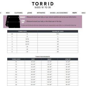 17" flat. 10" rise. 25.5" inseam. 5" leg opening at hem. Size 18/20; 2X (Torrid Size 2) EUC (possibly NWOT)