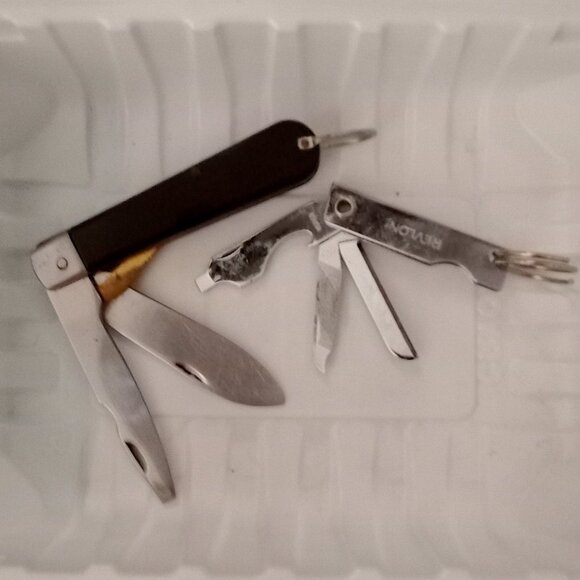 Vintage...Collectible...2 Folding Pocket Tools...with key chain loops...Multi-use/Stainless Steel...pre-loved in good condition.