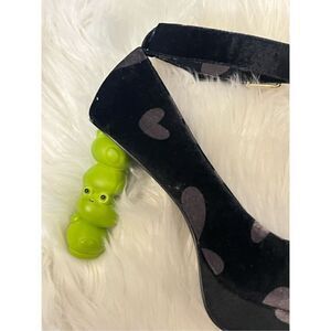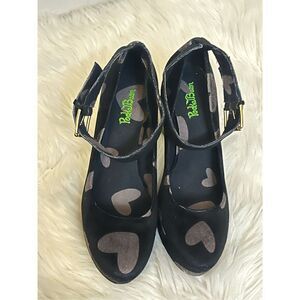 Pocketbean Retro Funky Black Heart Print Froggy Heel Shoes 9