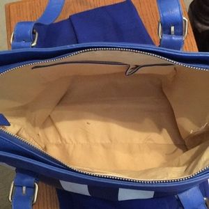 Royal blue and white stripes. Excellent used condition. 11 1/4 by 14 1/2 wide
