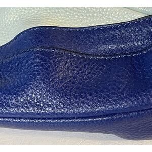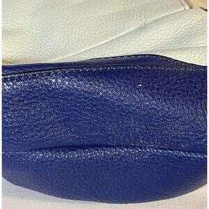 Shoulder Bag Tote, Lyssie Seafoam and Indigo sides. pebble handle, with double shoulder straps. Magnetic clasp. Green lining.