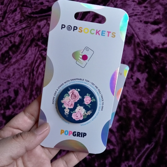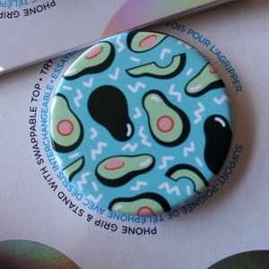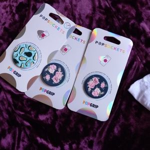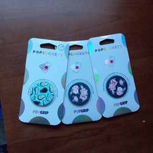 3 x 27..Three POPGRIP POPSOCKETS include one blue whit avocado and 2 black whit Pink background