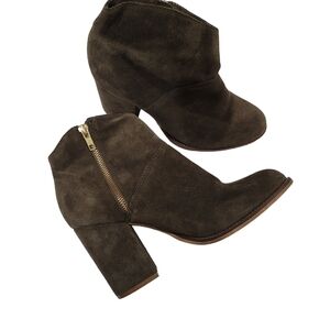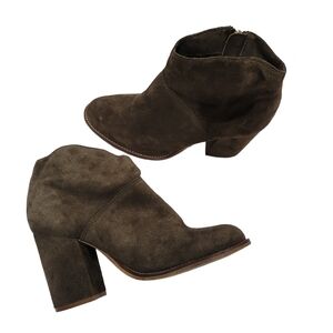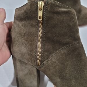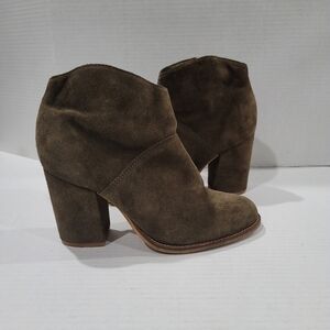 Poelman Block Heel Suede Ankle Booties Size 40 in olive green color